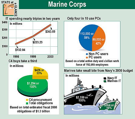 By Bill MurrayGCN StaffAlthough a Web site designed to improve the morale and well-being of Marines became operational two years ahead of schedule, a lack of officer support and limited bandwidth have stalled its growth, its chief architect says.Marine Online, at , started with a splash when the Marines collected 40,000 exit and retention surveys from departing active duty and reserve soldiers from June to September, said Maj. Darrell Philpot, the system's program manager. The study of why Marines were leaving the service was conducted on behalf of the Marine Corps Headquarters Manpower Branch, Philpot said.The site, built on a shoestring budget of $2.3 million in 30 days, has languished since then, he said. The site has 50,000 registered users'active duty, reserve and retired Marines'out of a target audience of more than 530,000, he said.By not embracing this technology, the service is missing a major opportunity to better retain its junior Marines, Philpot said.'We were constrained by access,' he said. His entrepreneurial Marine Online promotional attempts netted several supportive servicewide messages, he said.'It's still the Marine Corps,' which suffers from an aging infrastructure and an old-school mindset, he said. 'We built it, and they tried to come,' he said of his fellow Marines.'Trying to do something like this in the Marine Corps is like pulling teeth. You have to fight every step of the way,' said Philpot, who, after 20 years in the service, will leave his post next month and then retire.Marine Online users have free e-mail access, with no limit on relatively inexpensive memory, he said. Marines can look at their unit rosters and view pay and personnel data.Marine Online has 144 18G Digital Equipment Corp. Enterprise Storage Arrays, Philpot said.Other proposed enhancements'which would let soldiers change their addresses, paycheck direct deposit information and tax withholding rates, as well as let them submit leave requests, engage in leadership chat rooms and view performance evaluations'have not received approval.'We need to let them know the true benefits of being a Marine,' he said.Philpot wants local commissaries and exchanges to advertise'for example, diaper sales for married Marines with small children'through Marine Online, using the system's database to target customers, he said.Special Services could report the availability of scuba gear or sailboats, and Marines could get information about family counseling services and other programs, he said.'We could send them information relevant to who they are, where they're at, their rank, billet and military occupation specialty in the Marine Corps,' similar to the way unfilled spaces in training schools are used, he said. 'A lot of Marines are not aware of the opportunities.'Marine Online uses Microsoft Commercial Internet System 2.5, a product for Internet service providers, Philpot said. The Corps pays 50 cents per user per month for the license, he said.'We took the approach that we're going to build it for the whole Marine Corps,' he said.The site, which runs under Microsoft Windows NT Server 4.0, taps a Microsoft SQL Server 7.0 database.A 9710 Library Storage Model from Storage Technology Corp. of Louisville, Colo., can perform full and incremental backups of up to 40T of data, Philpot said. Marine Online uses Catalyst 5505 switches from Cisco Systems Inc. of San Jose Calif., as well as Cisco hubs and routers, he said.Up to 20 contractors worked on Marine Online during its deployment. Four contractors from Global Management Systems Inc. of Rockville, Md., administer the system, Philpot said.The site's growth is not a top priority for the service. Officials want to ensure that operating forces have everything they need, which means supporting troops back home may not have all they want, Capt. Peter Mitchell said.'Bandwidth is more than just a personal issue, and it's very important to us. It helps people to do their jobs better,' he said.Philpot said he disagrees with some officials' perception that Marine Online would weaken discipline in the Marines.In the areas Marine Online initially tackles'morale, welfare, recreation and quality of life'commanders cannot do much to help their troops, he said.'The Marines are going to the Internet and the Web just like the rest of the world. I just chose to do it in a visionary way rather than a reactionary way,' Philpot said.XXXSPLITXXX-