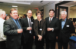 At left, members of the FirstGov group include, from left, Transportation CIO George Molaski and Commerce CIO Roger Baker, both FirstGov board members; Deborah Diaz, GSA's deputy associate administrator for FirstGov; Dave Binetti of the FedSearch Foundation and GSA CIO Bill Piatt.