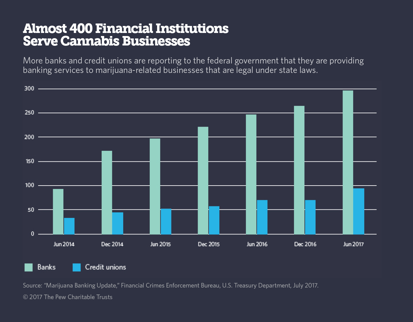 In neighboring Washington, where recreational marijuana sales began in 2014, several financial institutions are openly working with the industry.