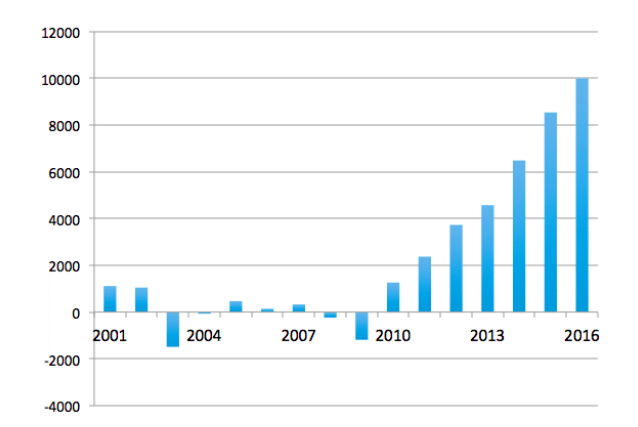 Net New Jobs at American Breweries, 2001-2016