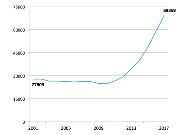 Total Employment at U.S. Breweries, 2001-2017