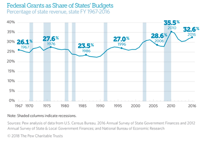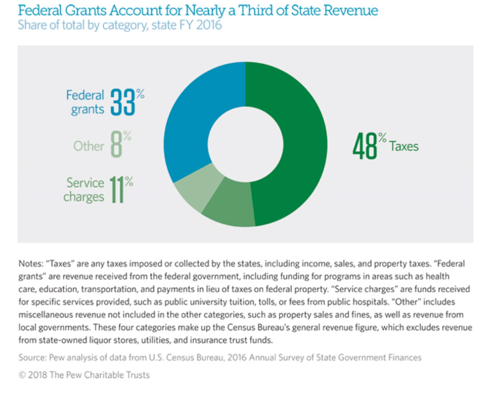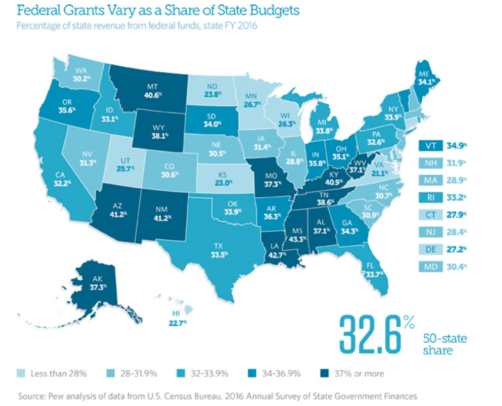 - The percentage of state revenue from federal funds was roughly twice as great in Mississippi (43.3 percent), Louisiana (42.7 percent), and Arizona and New Mexico (41.2 percent each)—the states where federal shares were highest—as in Virginia (21.1 percent), Hawaii (22.7 percent), and Kansas (23.0 percent)—the states where the shares were lowest.
