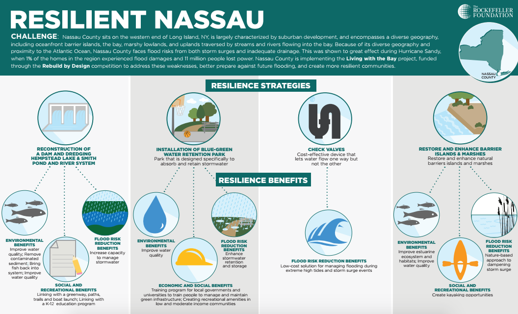 So when Rebuild by Design, a collaborative partnership between the Obama administration and The Rockefeller Foundation, offered to lend resilient design expertise to the county’s recovery effort, Nassau jumped at the opportunity and the Living with the Bay project was born.