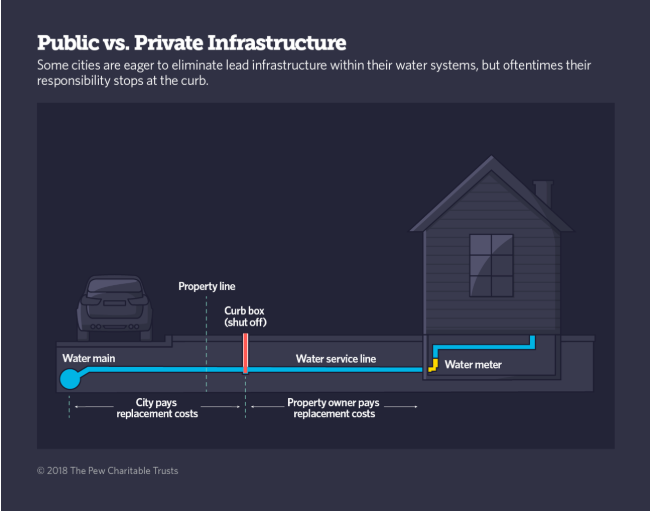 Barred by state law from spending public money on private property, Pittsburgh in spring 2017—nearly a year after the lead was first detected in July 2016—began replacing sections of lead pipe running from the water main to curbs, leaving the part of each pipe running from the curb into homes untouched.