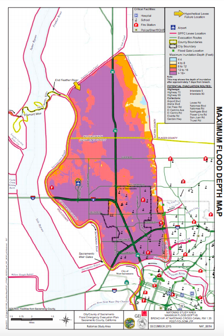 Flood-depth scenarios for certain hypothetical levee breaks are frightening: According to information from the city of Sacramento, a compromised levee along the Cross-Natomas Canal would fill parts of an area of Sacramento called the Natomas Basin with 16-plus feet of water.