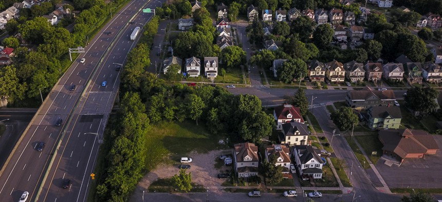 Seen here in 2019, Interstate 81 slices through a predominantly African American community in Syracuse, New York, one of the cities that has pursued a highway removal project in recent years. Jahi Chikwendiu/The Washington Post via Getty Images