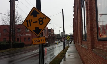 Too-tall trucks regularly—and sometimes spectacularly—crash into this low-height railroad bridge in Durham.