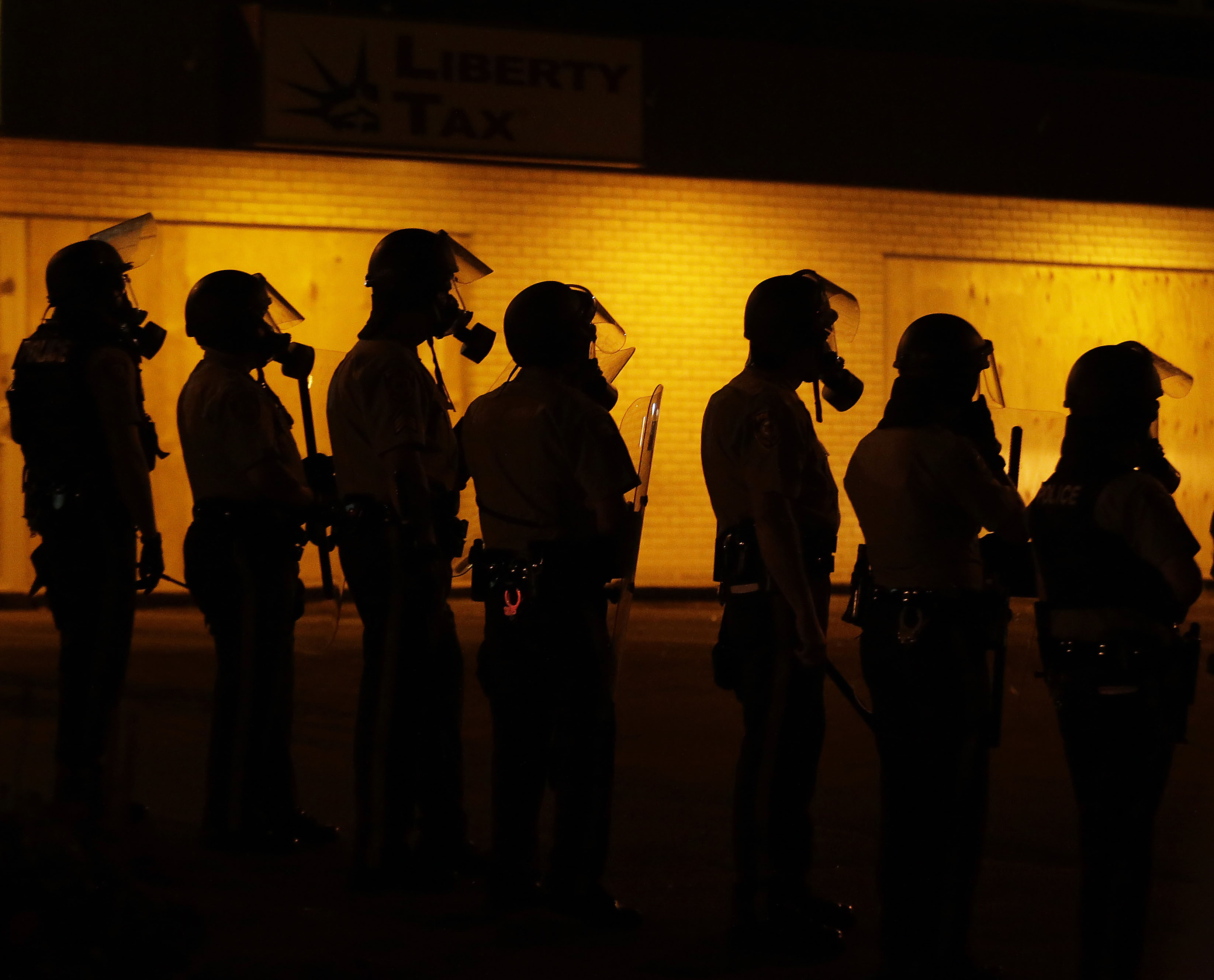 Police respond to protests in Ferguson, Missouri, on Aug. 17. (Charlie Riedel / AP File Photo)