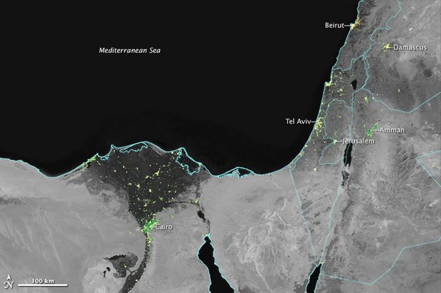And because the United States isn't the only place to celebrate holidays, here's the Middle East's summertime surge of radiance during Ramadan and Eid al-Fitr (this image combines data from 2012-2014):