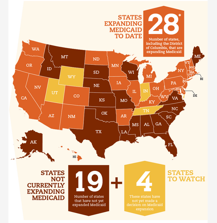 Nineteen states have so far turned down the Medicaid expansion offered, and largely financed, by the Affordable Care Act, and another four are still deciding whether to expand their programs. These states stand to forgo more than $400 billion in federal funds available to them over the 2013-2022 decade, according to estimates by the Urban Institute.