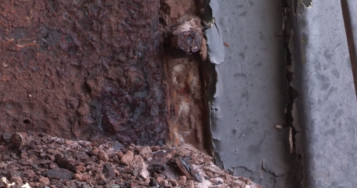 An example of the corrosion at the Oklahoma State Capitol (Image via Oklahoma OEMS / YouTube)