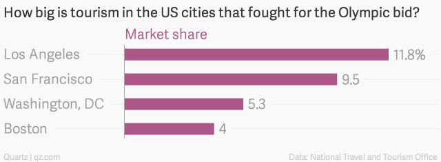 Bringing a big sporting event like the summer games to Boston could boost its tourism numbers by giving it international visibility, and bringing improved infrastructure. (There’s little evidence that the Games generate any net or lasting economic benefits for the host cities, though—and the cost overruns for hosting them can be massive.)