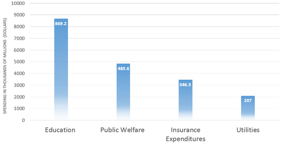 America spends tons of money on education even though the final product isn't very impressive. If children are indeed the future, then they're certainly an expensive one: Of the $3.2 trillion in total expenditures for local and state governments in 2012, education accounted for nearly 28 percent, or $869.2 billion, according to the latest data from the Census Bureau. That figure topped government spending in any other sector, almost doubling the second-largest recipient of taxpayer dollars—public welfare.