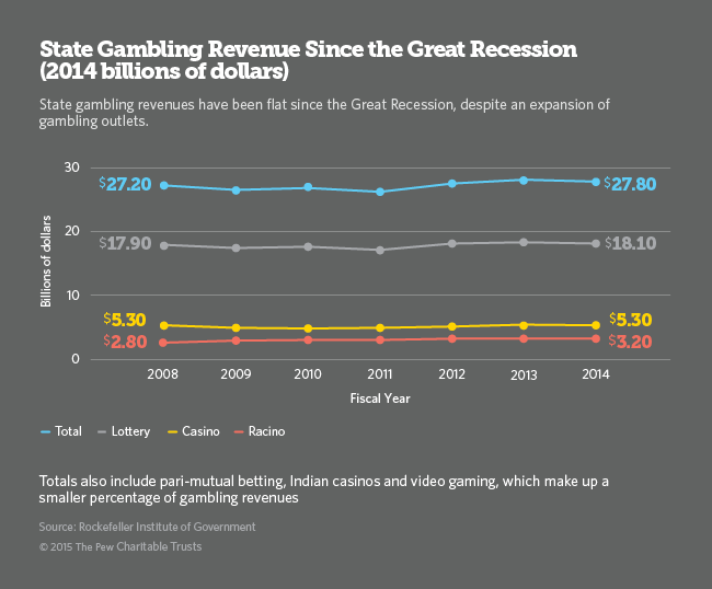 State revenue from taxing gambling—from casinos, lotteries and racing—has been largely flat since the Great Recession, when adjusted for inflation, according to the Rockefeller Institute, which studies tax revenue.