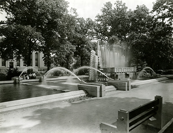 Earlier this summer, The Kalamazoo Gazette reported that the city received an $83,000 challenge grant to restore the deteriorating fountain in advance of the structure’s 75th anniversary. The article makes no mention of the controversy about the fountain’s design and there’s nothing at the fountain that mentions it either.