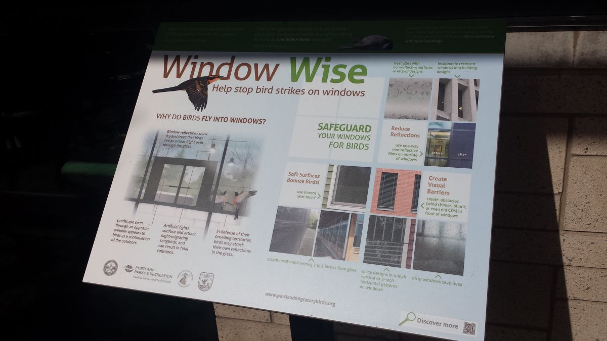 While checking out the Portland Department of Parks and Recreation’s Southwest Community Center and Pool on Friday, I stumbled upon a great public information campaign about why birds fly into windows and how to prevent collisions.