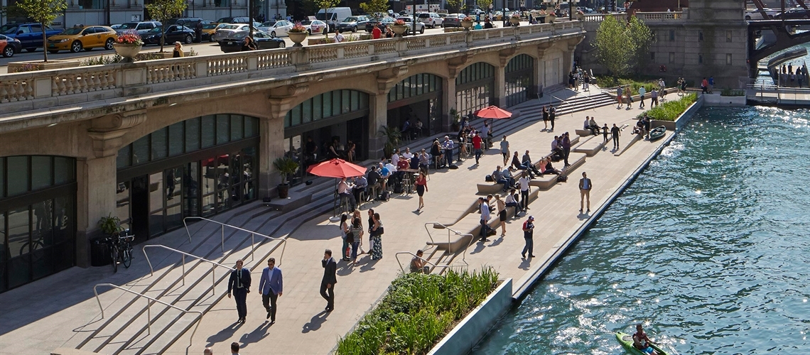 “Our experience re-imagining Chicago’s downtown Riverwalk got us thinking about what a new day would look like for entirely different places along our city’s rivers,” Carol Ross Barney, founder and design principal with Ross Barney Architects, said in the announcement. “These visions in action show what’s possible when we imagine how to transform dormant spaces into inviting, productive and living landscapes.”