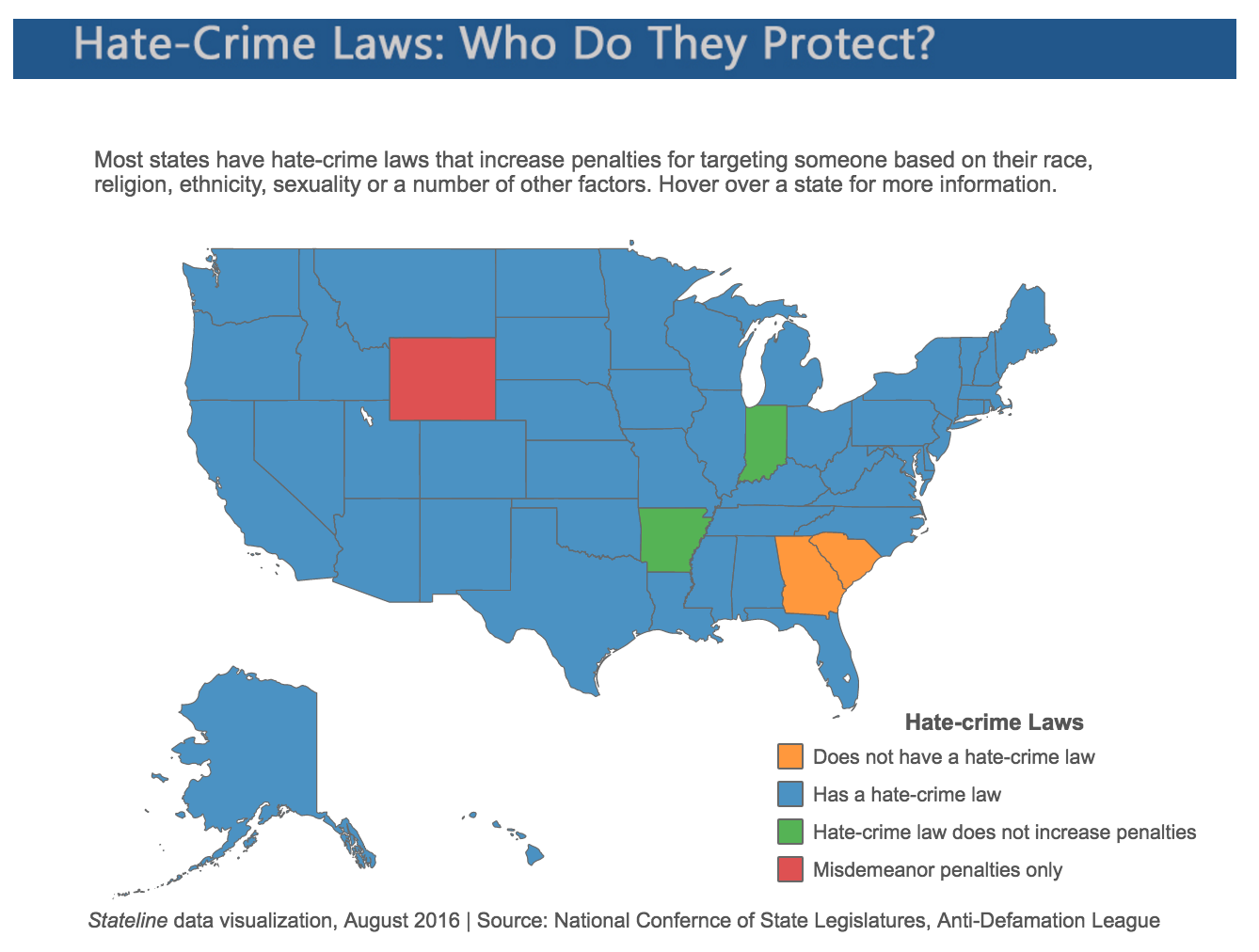 “It’s that extra layer of protection that reinforces morale by knowing the state of Louisiana is behind them,” said state Rep. Lance Harris, the Republican who sponsored the legislation there. The state’s hate-crime law adds up to $5,000 in fines or five years to someone’s sentence for a felony-level crime.