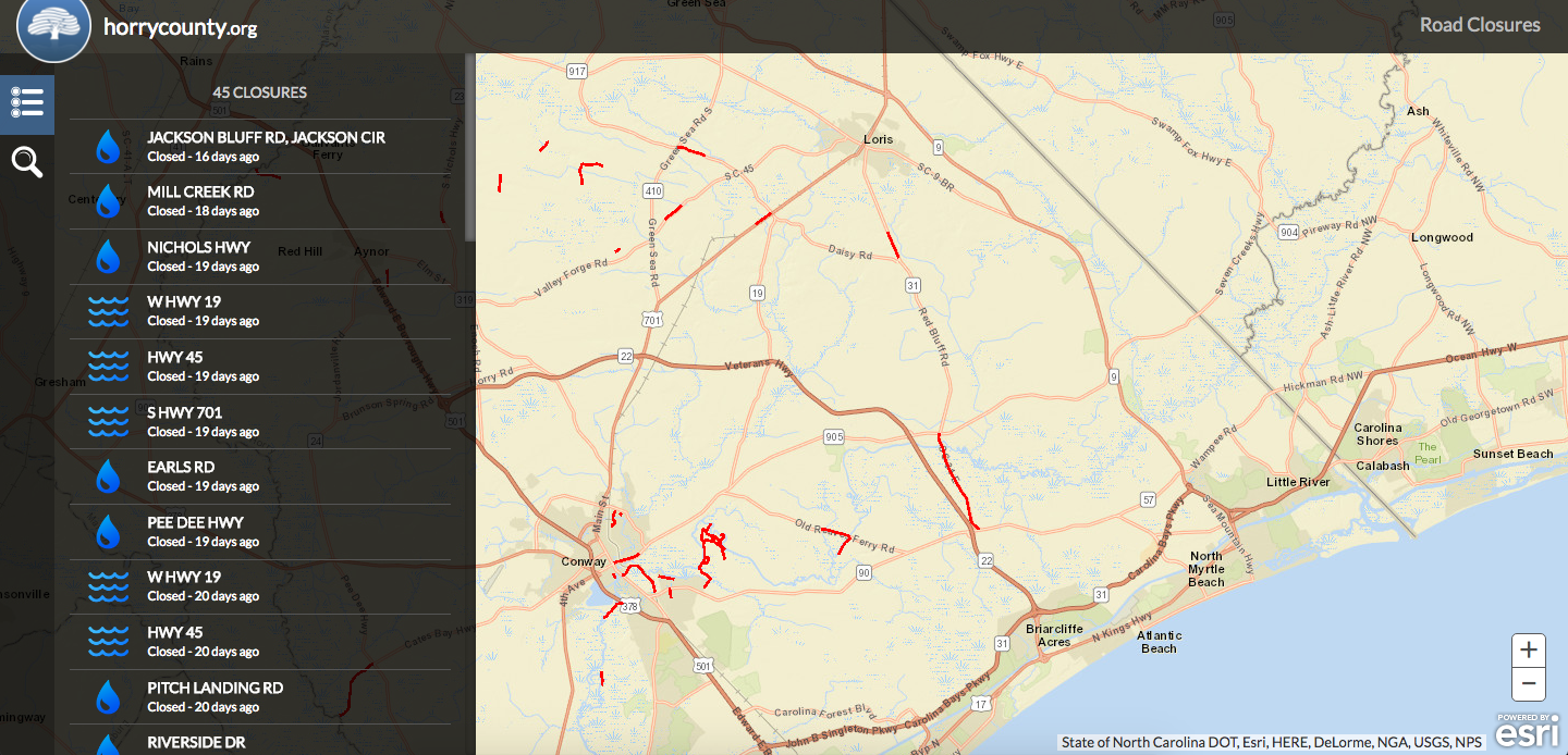 Horry County, meanwhile, created online storytelling maps for road cleanup and closures with ArcGIS.