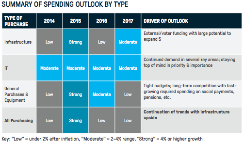 More state, local and education agencies, often referred to as the SLED market, view IT as an investment rather than a routing expense, which coupled with ongoing cybersecurity concerns make the area ripe for continued growth, according to the report. Since 2010, annual IT spending has risen from $29 billion to $34 billion—a 17 percent increase.