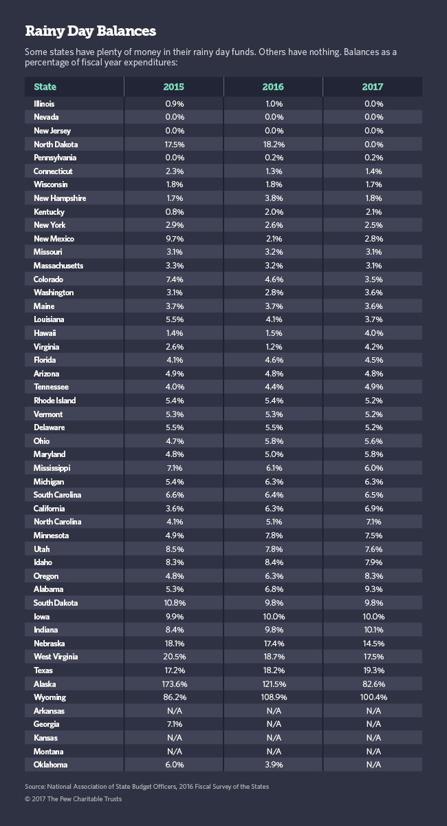 Some states, such as Alaska, are heavily dependent on severance tax revenue and depleted their rainy day funds during that time. This year, however, Alaska plans to stash more per capita than any other state.