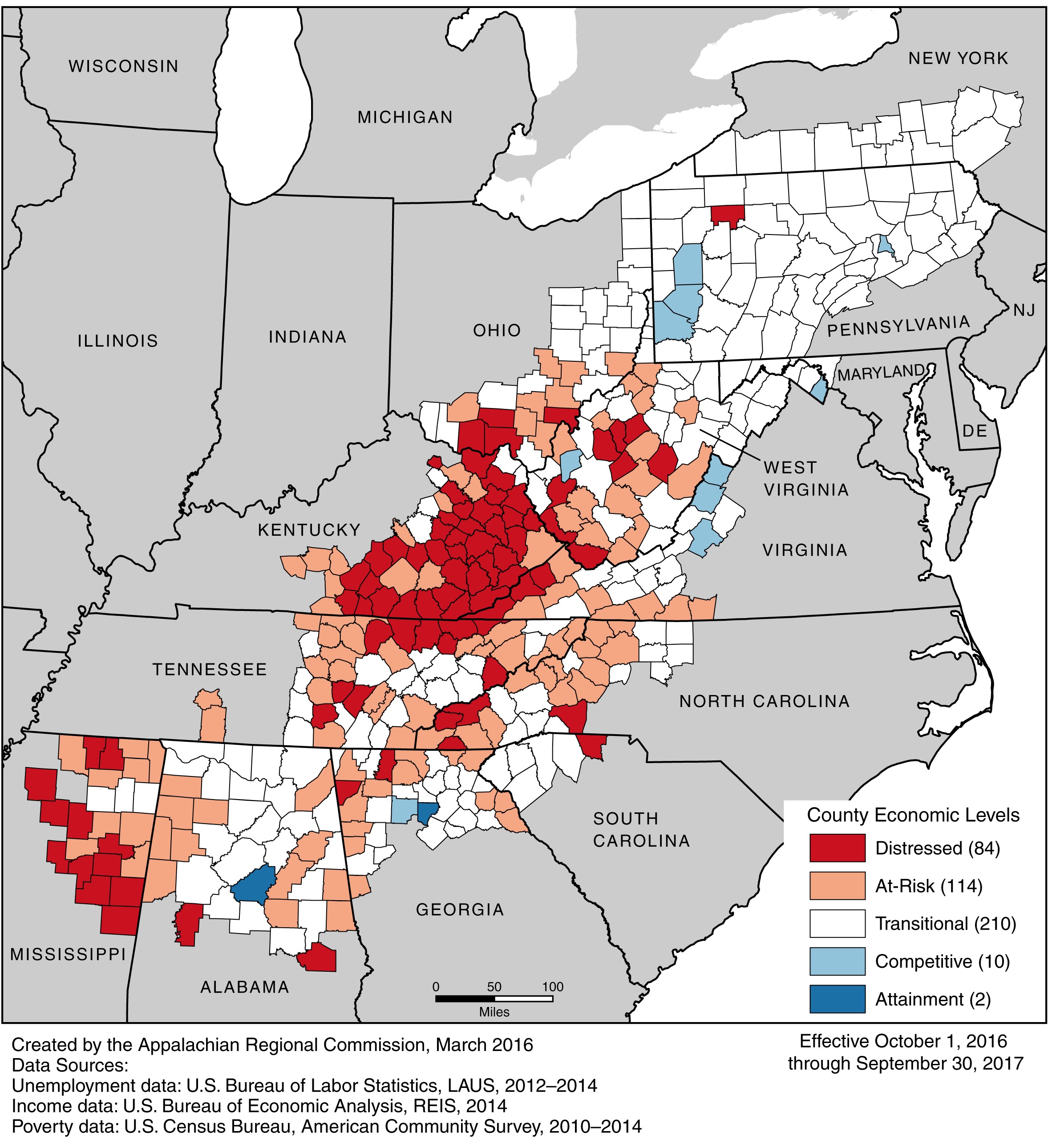 Appalachian county economic status for fiscal year 2017. (Source: Appalachian Regional Commission)