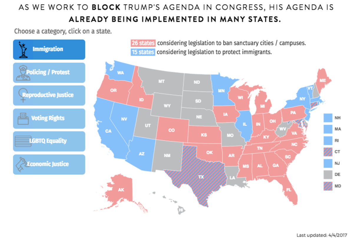 The Black Lives Matter statehouse project revolves around OurStates.org, a new online platform. With the help of tools on “Our States,” users can choose the issues that matter to them—immigration, policing, reproductive justice, etc.—and remain up-to-date on pending relevant legislation.