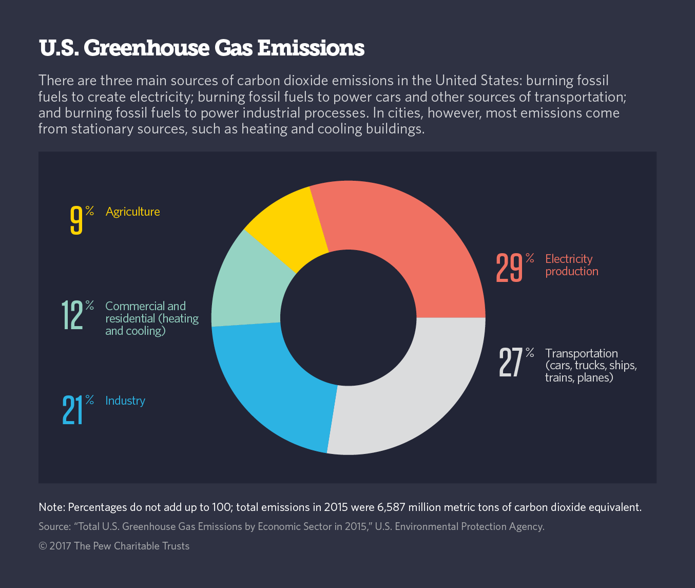 Carbon dioxide is the most common gas known to trap heat and raise the planet’s temperature, according to the U.S. Environmental Protection Agency. There are three main sources of carbon dioxide emissions in the United States: burning fossil fuels to create electricity; burning fossil fuels to power cars and other sources of transportation; and burning fossil fuels to power industrial processes.