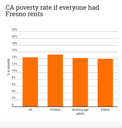 Relocating every poor family in the state to Fresno is, well, not a practical policy consideration. And housing subsidies for low-income families currently make only a small dent in the poverty rate, at least compared to some other safety-net programs.