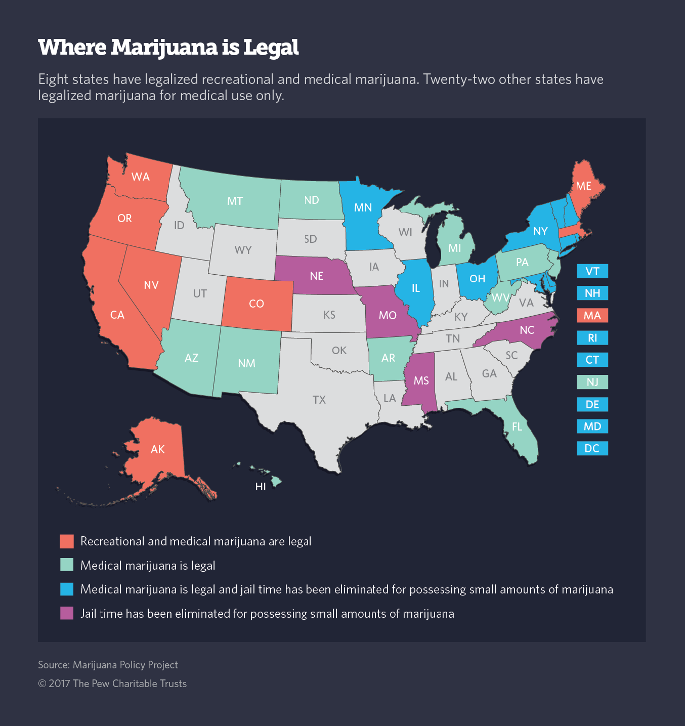 The four states where ballot initiatives legalized recreational marijuana last year may have the best chance of finding a solution. Nevada allows smoking inside many bars and clubs, for instance, so pot lounge proposals raise fewer concerns about indoor air quality.