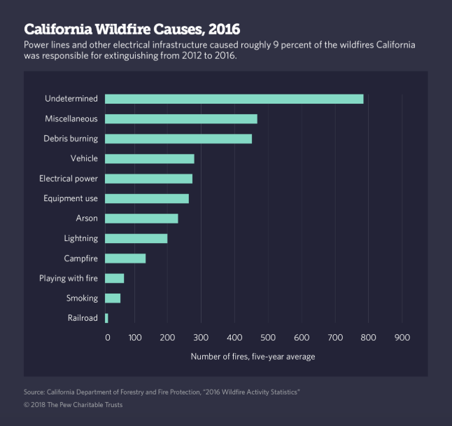 Power lines are a leading cause of those wildfires that can be traced to a single source in California. Fires typically start when trees or other objects — such as errant balloons — fall across lines, or some component of the power line equipment fails.