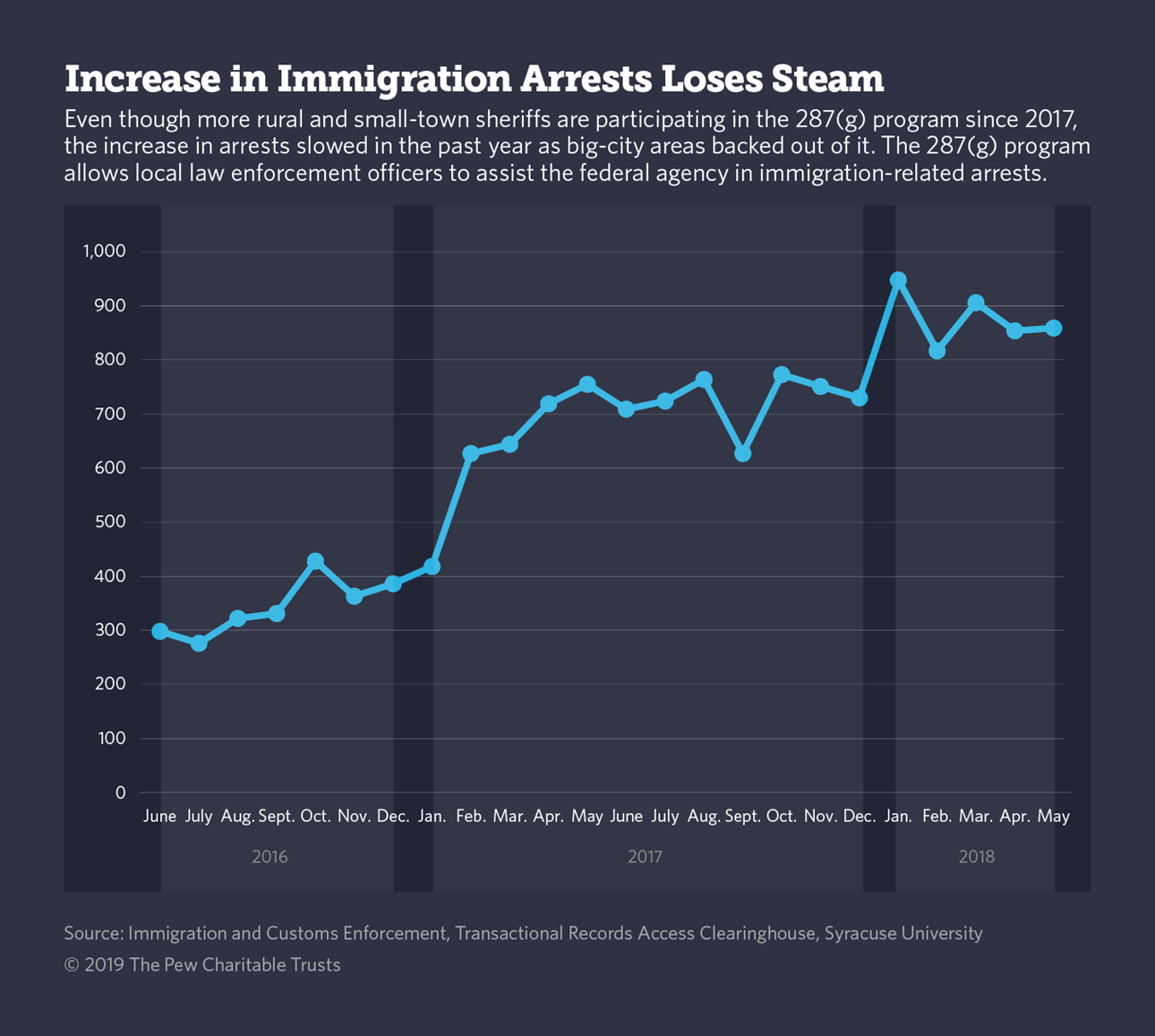Urban counties across the country increasingly are withdrawing from the program, even as more conservative suburban and rural areas flock to it during the Trump administration, according to a Stateline analysis of federal and state data. Overall, the number of federal agreements with local law enforcement agencies has more than doubled, to about 75, with 45 of them signed since President Donald Trump took office two years ago. But the increase in arrests related to the program has slowed as more big-city sheriffs back out.