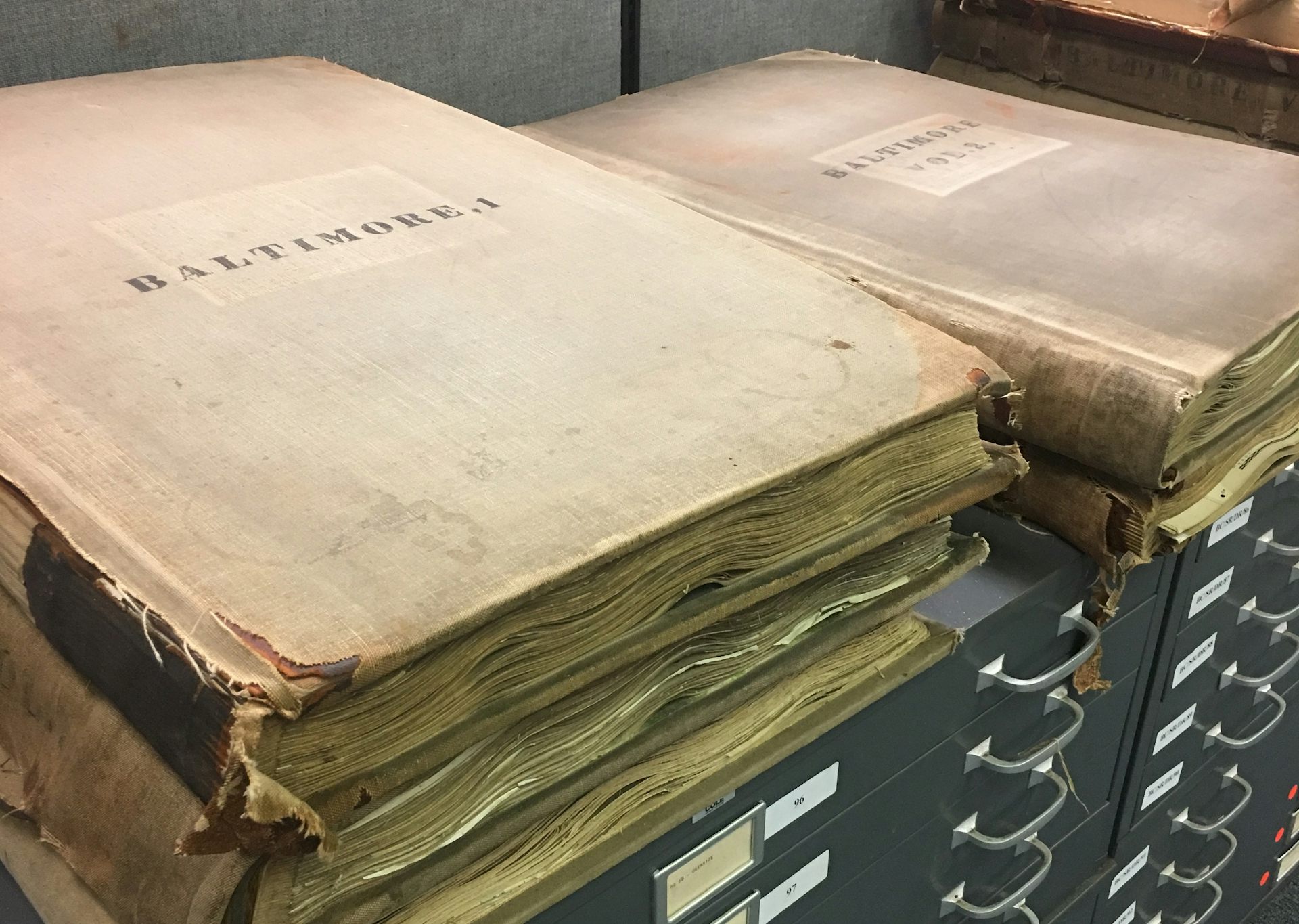 I got a cartography lesson at the Johns Hopkins University’s Eisenhower Library, which led me to visit the Baltimore City Archives, where I was able to handle original Sanborn maps. These maps provide extremely detailed aerial views of the neighborhood, including footprints of buildings that no longer exist.