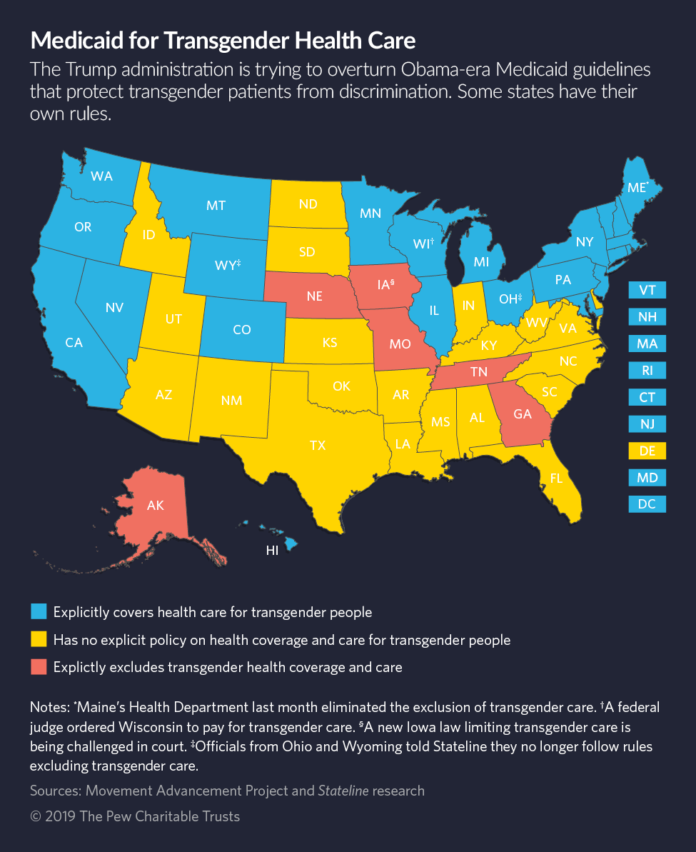 Some state policies are less clear. Ohio and Wyoming have policies excluding Medicaid coverage for transition services. But officials in the two states, when contacted by Stateline, essentially said those policies are not being followed, though the changes haven’t been put in writing yet.