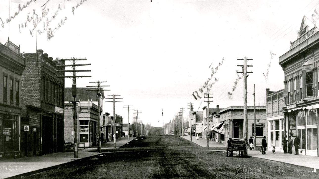 The commercial district of Genesee, Idaho, one of the oldest communities in Latah County, seen circa 1910. (Latah County Historical Society)