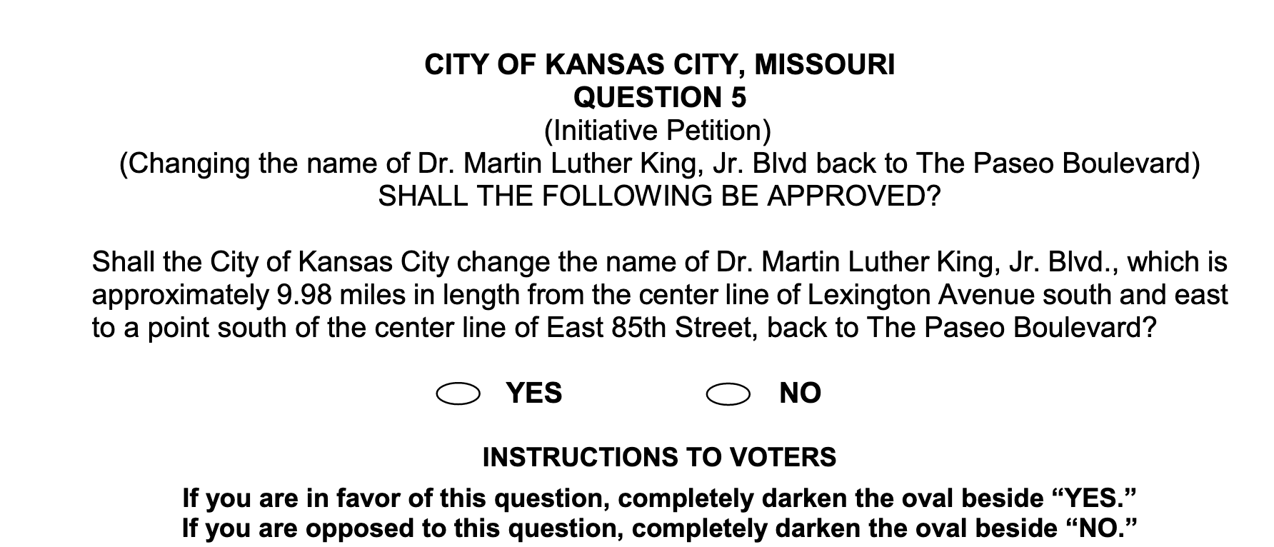 Months after Kansas City lawmakers voted to rename a historic boulevard for Dr. Martin Luther King, voters will decide whether to restore the roadway’s original name.