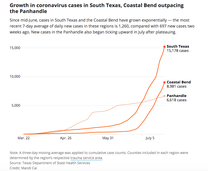 This article originally appeared in The Texas Tribune at https://www.texastribune.org/2020/07/18/texas-coronavirus-hot-spots/.