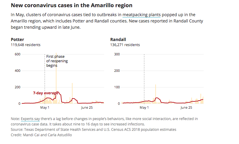 Case counts stayed low in June, but they’re now on the rise again in the perfectly rectangular counties that make up the Amarillo area. And instead of a few facilities, the sources of those infections are more widespread.