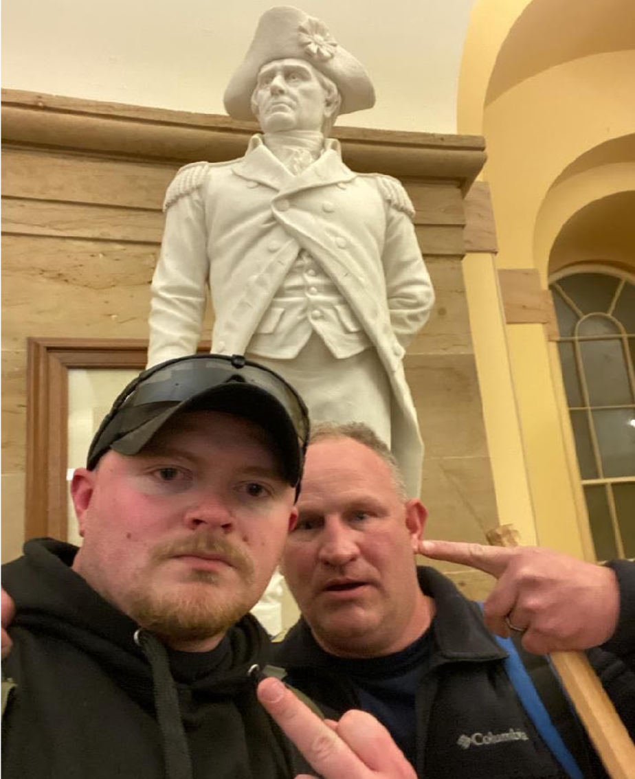 A criminal complaint filed by a U.S. Capitol Police officer states that Robertson shared a photo of the pair, who were off duty at the time, standing in front of a statue of John Stark inside the Capitol building. Stark was a Revolutionary War officer from New Hampshire known for penning the state’s motto, “Live free or die.”