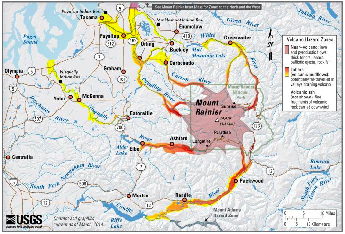 Volcanic hazards from Mount Rainier in Washington state (via USGS)