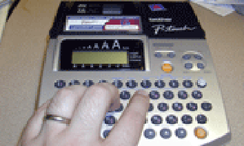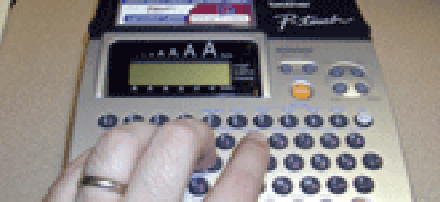 The PT-2600 could be the mother of all label makers. The heavy unit runs on eight AA batteries or can be plugged into a wall outlet. It is about the size of an old adding machine and looks like a miniature typewriter.