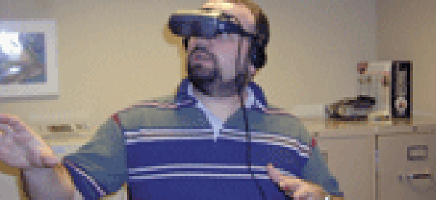 If you have the right connections, the i-glasses HRV from i-O Display Systems Ltd. of Sacramento, Calif., can be a lot of fun, and perhaps a useful business tool. The display looks like a giant pair of sunglasses. Although it only weighs seven ounces, it feels heavy when you wear it.