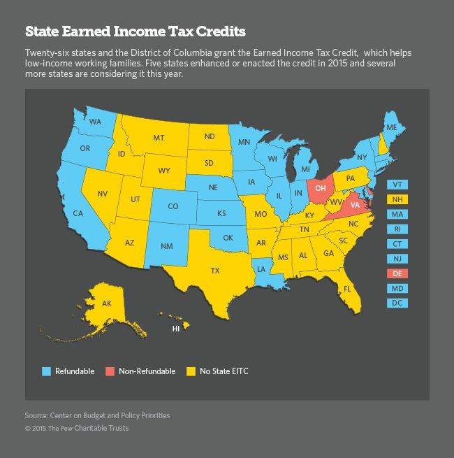 Twenty-six states and the District of Columbia now have an EITC. All but three of them make the tax refundable, which means filers who are eligible for a tax credit greater than their tax bill can receive the difference as a refund. For example, a filer who owed $800 in taxes and qualified for a $1,000 refundable credit would get a $200 refund.