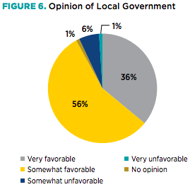 Most undergraduate and graduate students, 56 percent, have a “somewhat favorable” opinion of local government and 36 percent a “very favorable” opinion, according to the survey, reflecting a willingness to consider public sector work.