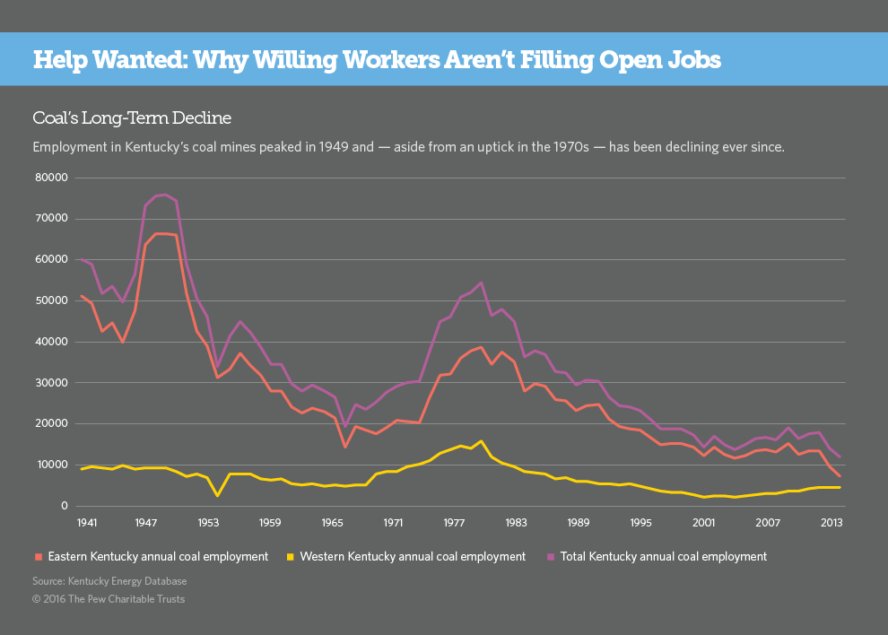PIKEVILLE, Ky. — The small green sign outside the employment center in this eastern Kentucky town said “JOB FAIR” and “TODAY!!” Inside, people hunched over applications for coal mining jobs in the western part of the state, and in Illinois and Indiana.